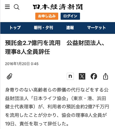 事例① 日本ライフ協会の預託金流用と経営破綻(約4.8億円)