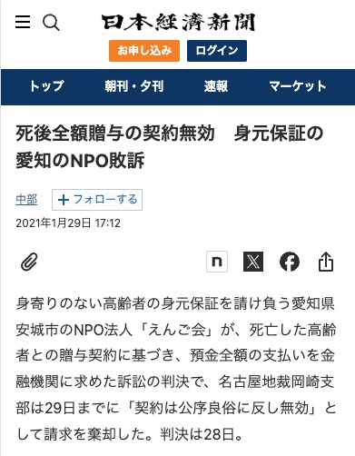 事例② NPO法人えんご会(名古屋)の死因贈与を巡る裁判