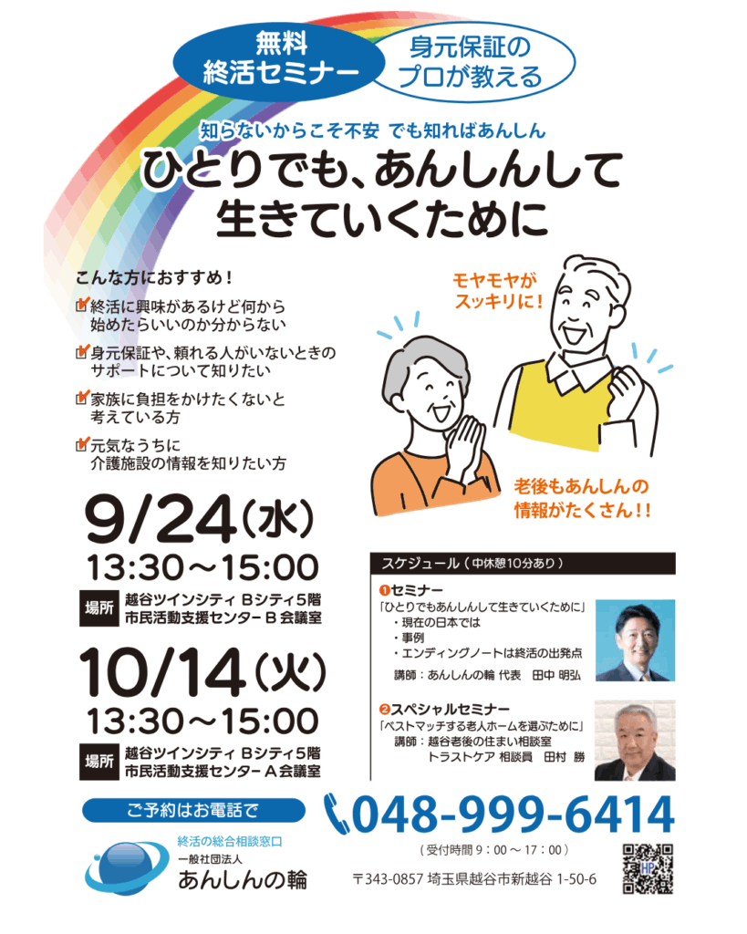 次回の終活セミナーは以下の日程で開催いたします。